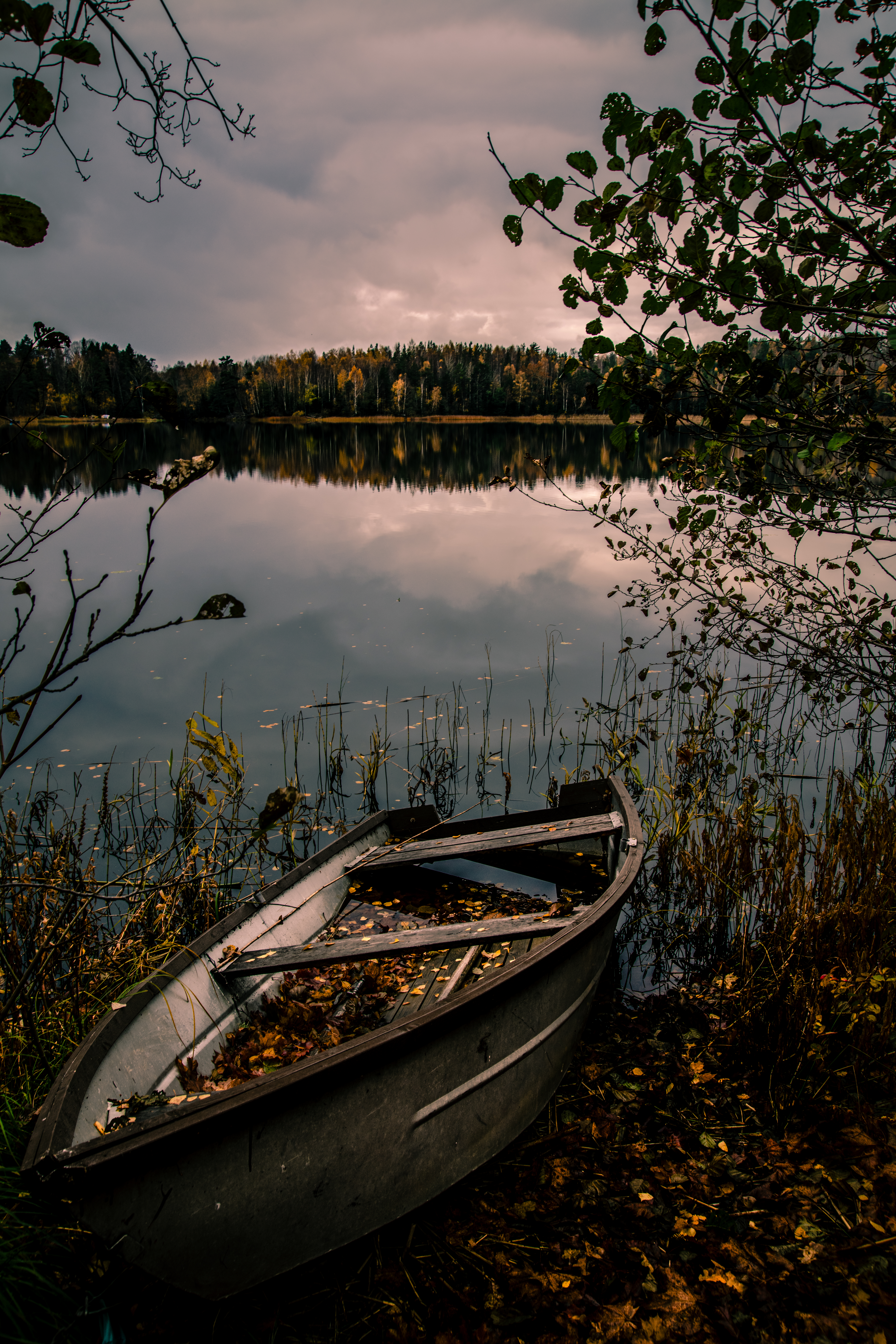 Strandad båt i en Roslagssjö